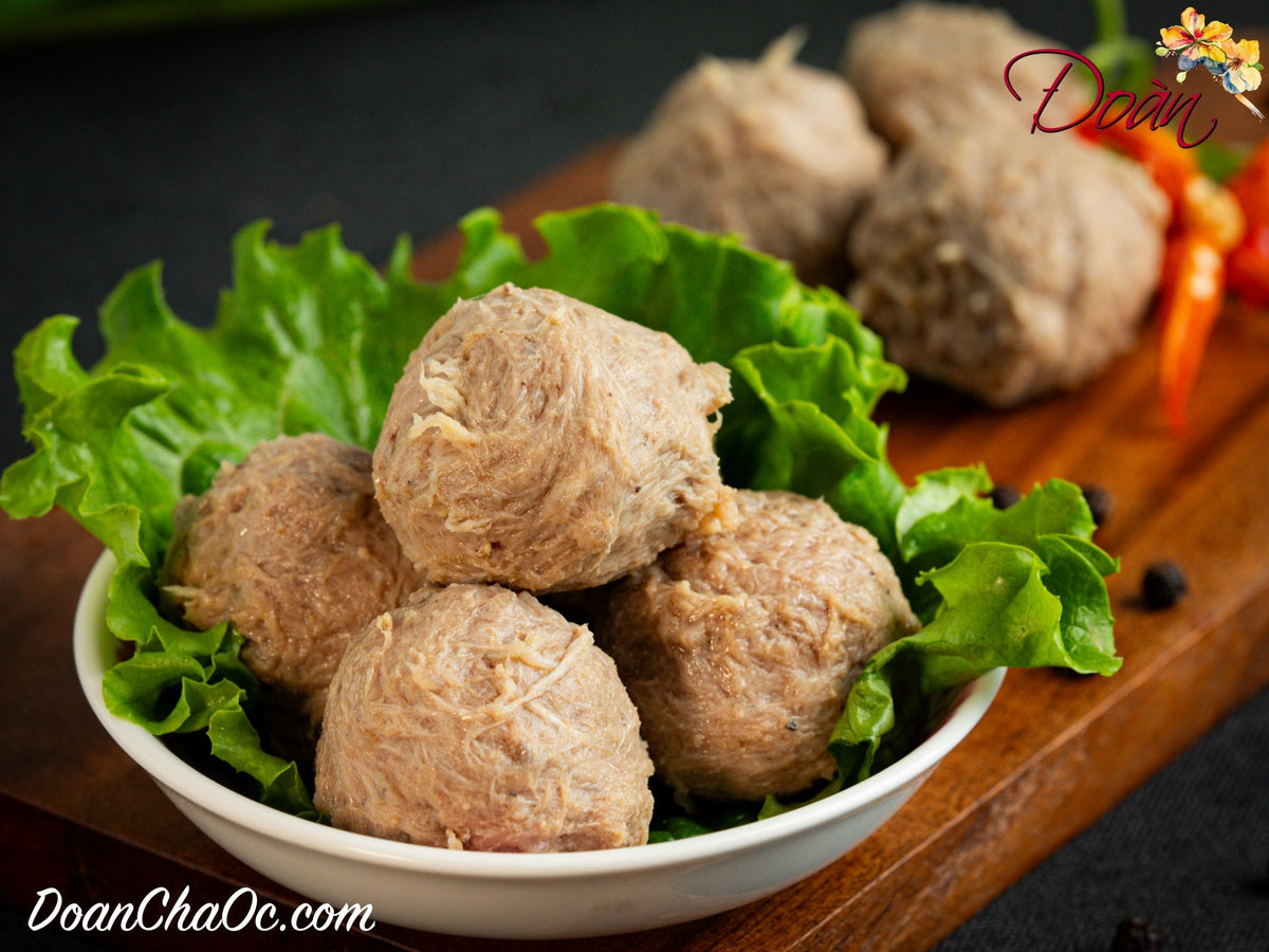 Pork and shrimp. Uncooked. Microwave to cook and ready to eat. 5 balls/ pack