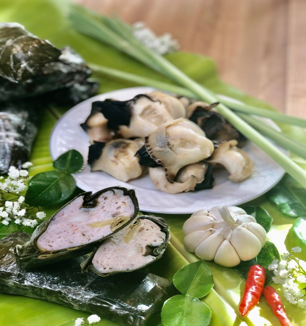 Steamed in banana leaf, with ginger, lemongrass, and kaffir lime leaf. 90gr
