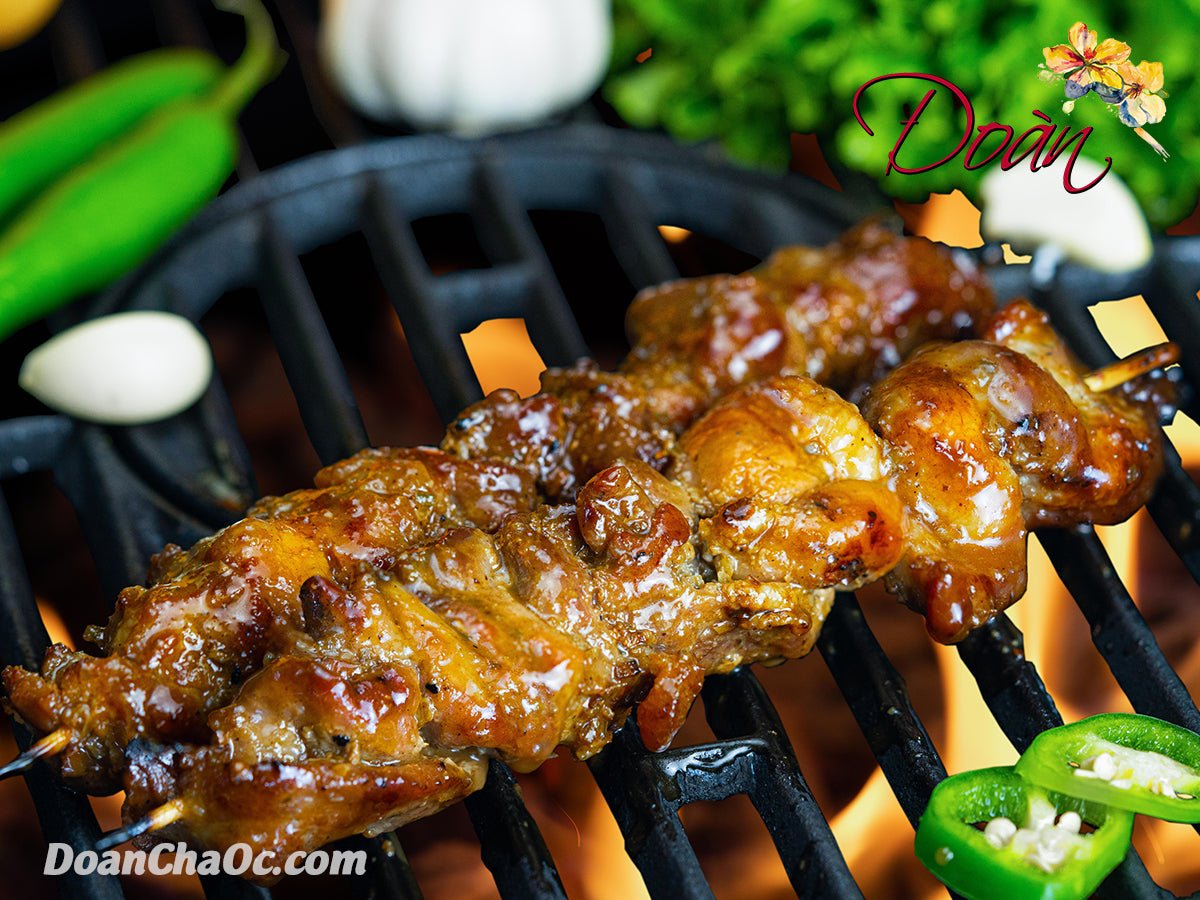 Grilled lemongrass pork on skewers. $3.50/skewer 90gr, 2 skewers per bag.
